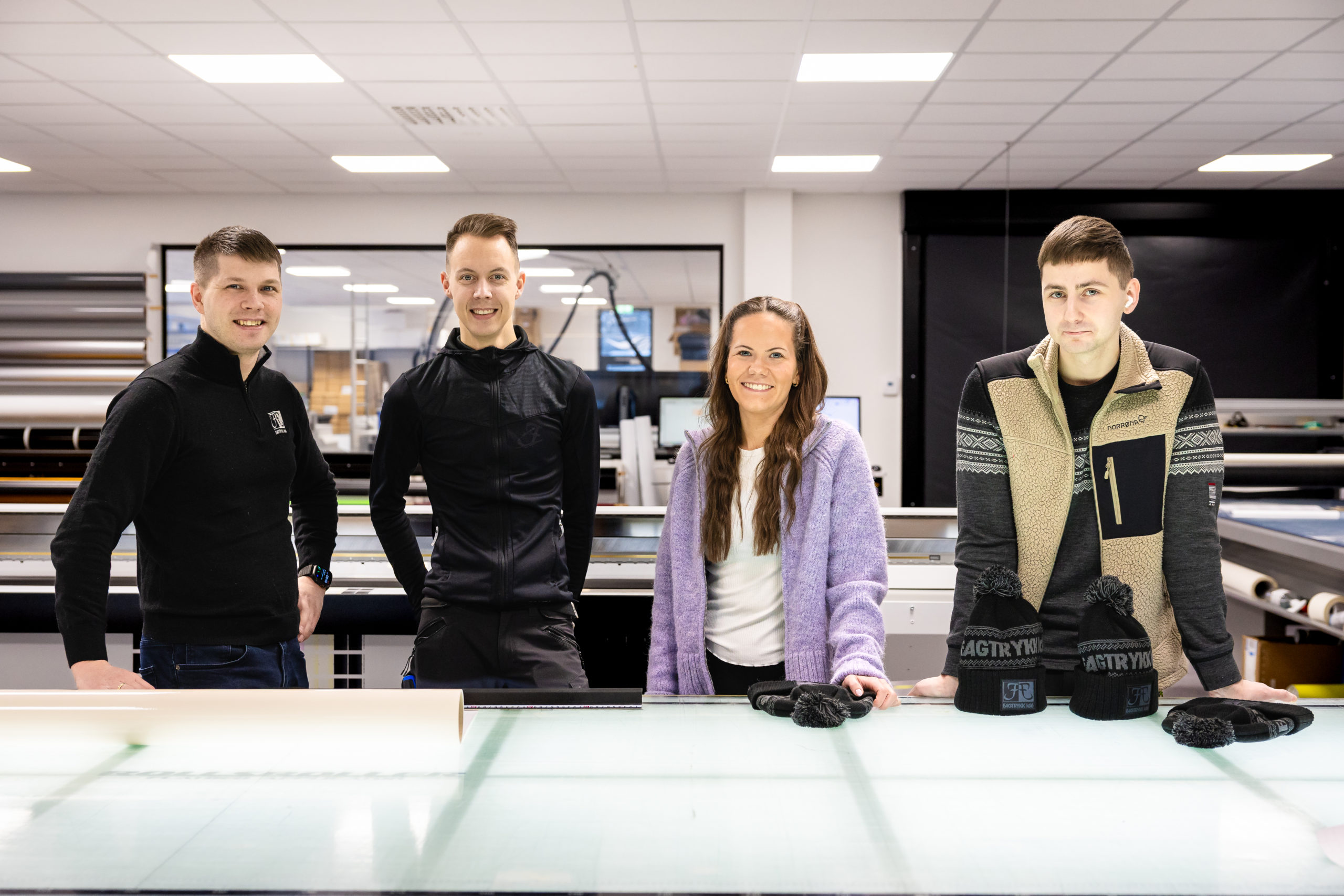 Vi utfører trykking og brodering av mønster, tekst og logo på et stort utvalg av klær og profileringsartikler.
